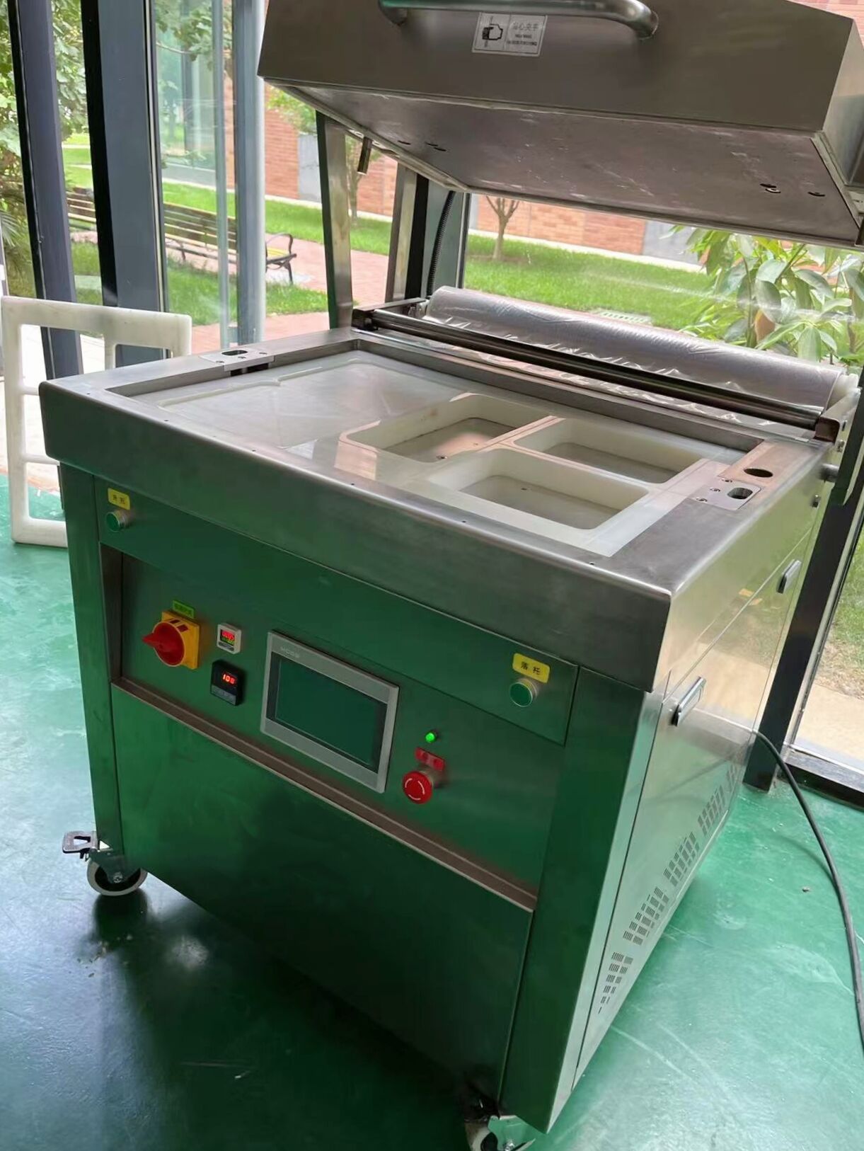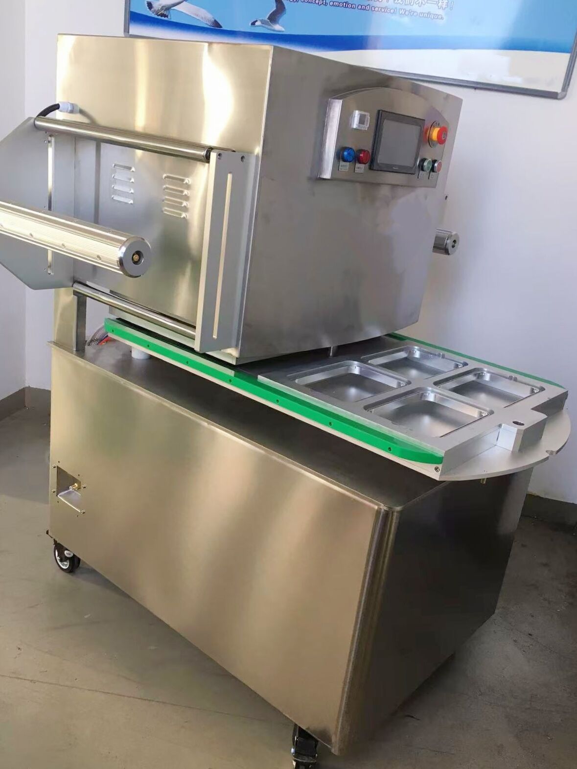 CBW-E-RS-760T Modified Atmosphere Packing machine Model number: CBW-E-RS-760T Package size:L700 *W500 *H 600mm Packing speed: 1-3 times/min Body fitting accuracy: P 98% Max membrane width: 7600mm Maximum roll film diameter: 300mm Voltage: 380V 50HZ Power consumption: 6 KW Working air pressure: 0.3-0.7Mpa Vacuum pump: 100 m³/h Air consumption: 0.3-0.7 NL/min Machine dimensions: L960*W950*H1040mm Machine weight: 310kg vacuum pump: BUSCH/BECKER