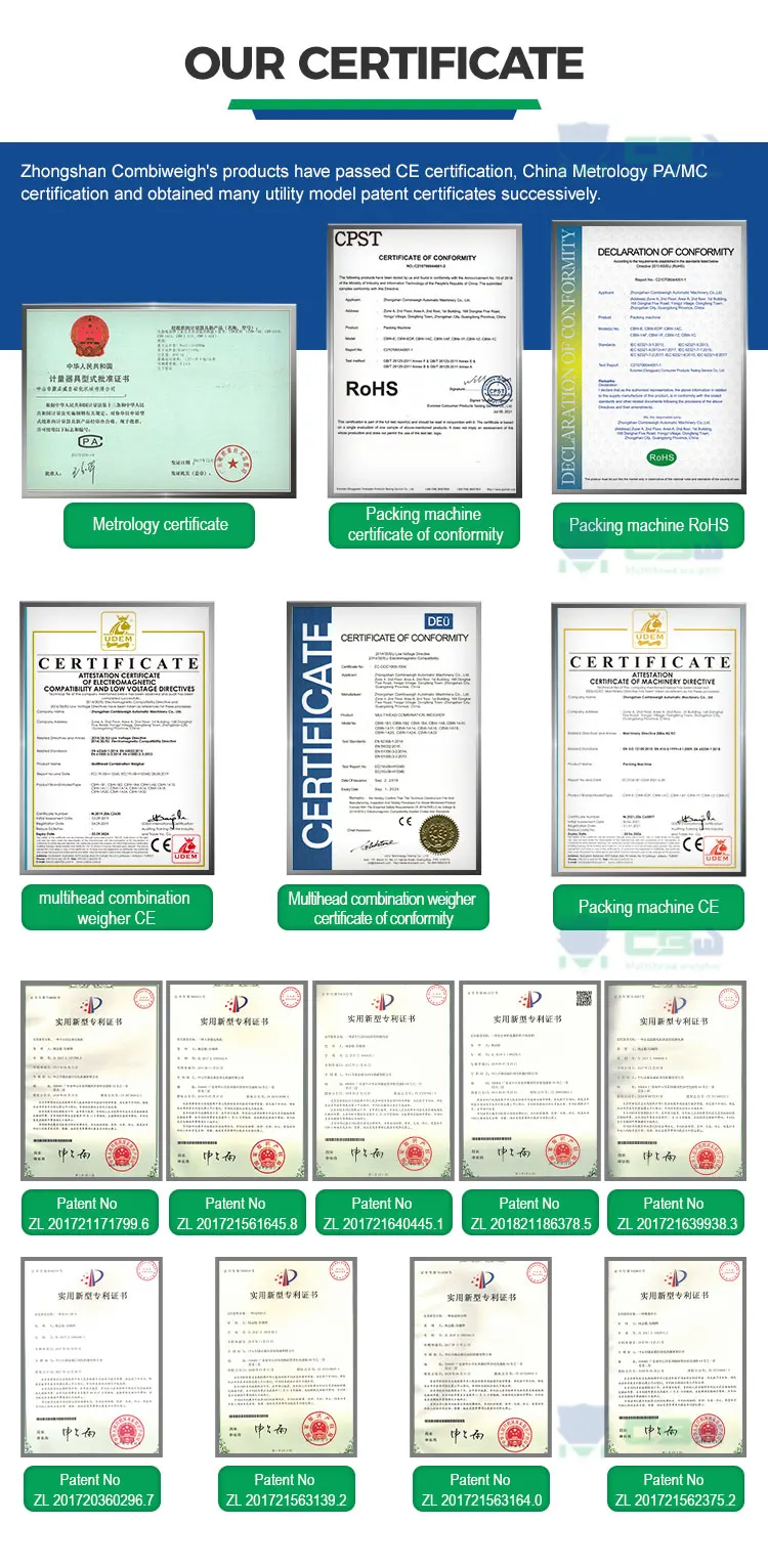 Soalan: Adakah Zhongshan Combiweigh (dikenali sebagai CBW) sebuah pengilang? Jawapan: Ya, kami adalah pengilang sebenar. Kami terutamanya mengkhusus dalam penyelidikan, perancangan, pembuatan, pemasaran dan perkhidmatan penimbang berkepala banyak, penimbang linear, dan lain-lain, serta menyediakan penyelesaian penimbangan yang disesuaikan. Soalan: Projek apa sahaja yang boleh dilaksanakan oleh CBW? Jawapan: Penyelesaian penimbangan dan pembungkusan automatik atau separa automatik untuk industri makanan dan bukan makanan. Soalan: Bahan apakah yang boleh ditangani dan dibungkus oleh CBW? Jawapan: Daripada serbuk halus atau melekit, bijirin dan bijirin tidak sekata, makanan beku atau sayur-sayuran, dan lain-lain. Soalan: Industri manakah yang boleh menggunakan CBW? Jawapan: Makanan haiwan peliharaan, kacang-kacangan, serbuk, gula-gula, plastik, perkakasan, atau makanan beku, dan lain-lain. Soalan: Berapa jenis hopper yang boleh disediakan oleh CBW? Jawapan: Untuk penimbang berkepala banyak, CBW mempunyai takungan berkapasiti 0.5L, 1L, 1.6L, 2.5L dan 5L. Untuk penimbang linear, CBW mempunyai takungan berkapasiti 3L, 5L, 7.5L dan 24L. Terdapat juga dulang penyuap lapisan tunggal dan dulang penyuap lapisan berganda untuk pilihan.